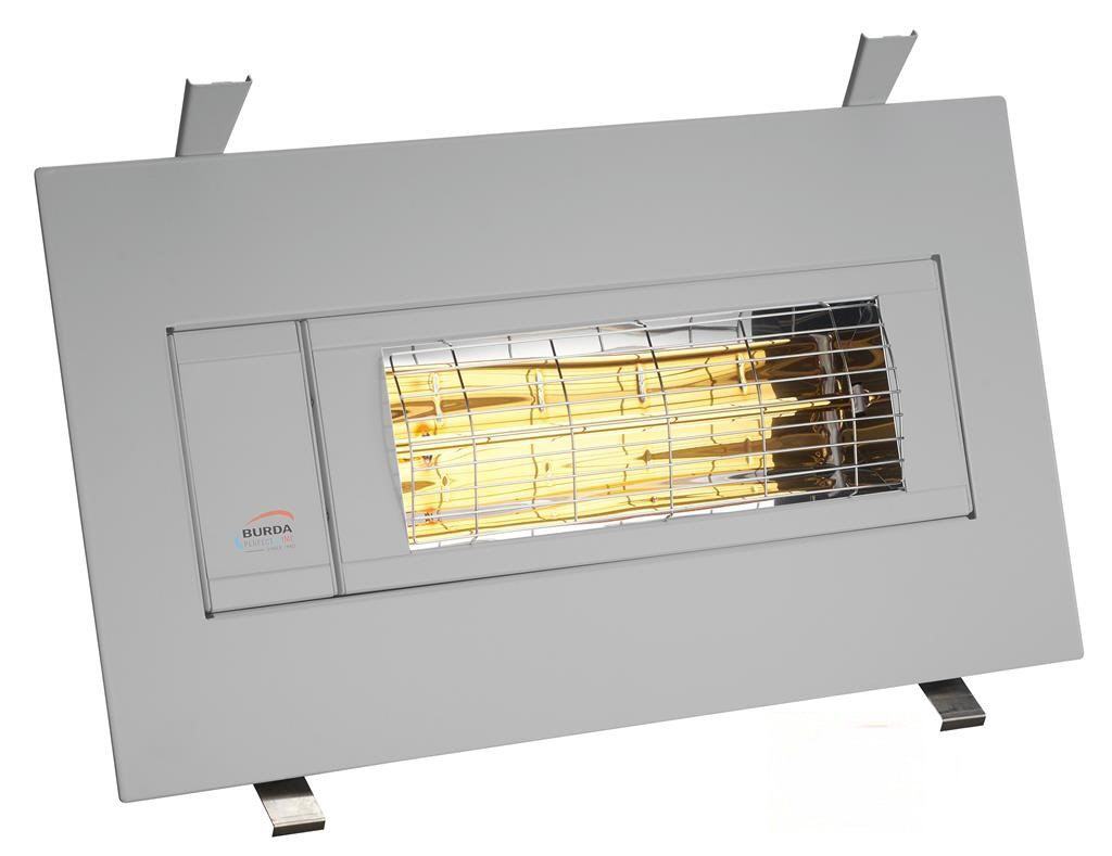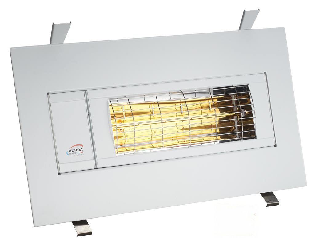 Burda Smart Frame BHSF2024-3 Low Glare Decken- und Wandeinbaumodell mit Spritzwasserschutz IP24 im rostfreien Aluminiumrahmen für geschützte Außenbereiche. Mit einer Leistung von 2.000 Watt versorgt der Einbaustrahler eine Fläche von circa 14 - 16 qm zuverlässig und schnell mit Sofortwärme.
