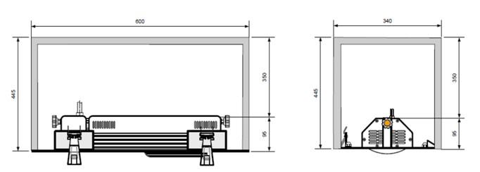 + Einbautiefe : min. 450mm. In dem Hohlraum über/hinter dem Strahler muss ein ausreichender Luftaustausch zur Wärmeabfuhr sichergestellt sein.