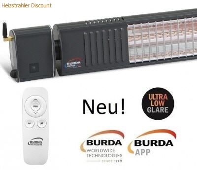 Bluetoothfähiger Infrarotheizstrahler TERM2000 IP67 Bluetooth COLOR - mit Ultra Low Glare Heizröhre inkl. Fernbedienung, integriertem Schalter und Bluetooth Steuerung per BURDA PERFECTCLIME APP ist das Ihr idealer Burda Heizstrahler für Sofortwärme auf Knopdruck!