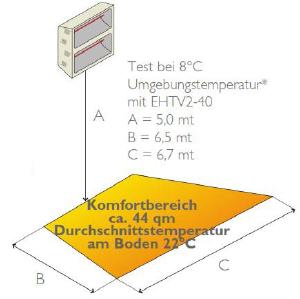 - Beheizbare Fläche: doppel bis 43/44 m2