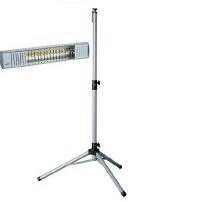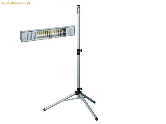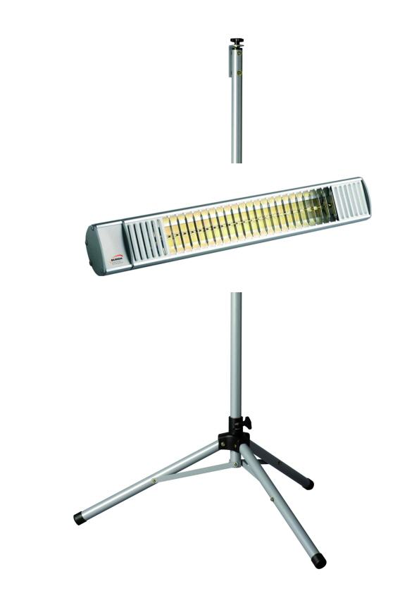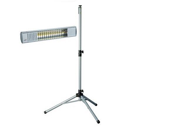 Burda Heizstrahler TERM 2000 IP67 Ultra Low Glare mit 2 kW auf einem Stativ für den mobilen Einsatz.