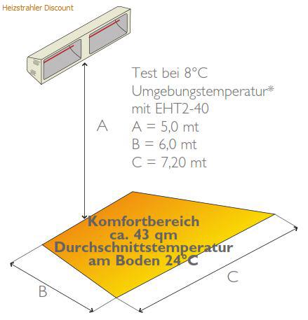 Der Helios Titan ist Testsieger mit Sofortwärme bis auf 5 Meter. Kein anderer Strahler projektiert 20°C auf 43m2 auf 5 m Entfernung. Großer Vorteil der Infrarotstrahler ist, dass einerseits nur beheizt wird wenn effektiv Wärme benötigt wird und andererseits 100% der Wärme sofort nach dem Einschalten des Gerätes spürbar ist.